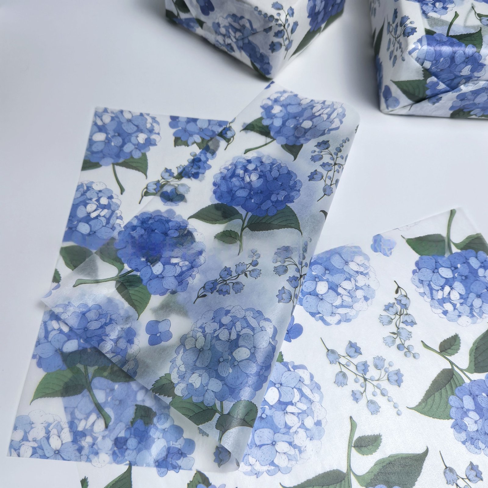 Blue Hydrangea Tissue Paper – Floral Design for Gift & Retail Packaging